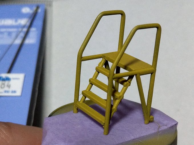 整備用ラダーを塗装+小加工しました(^ω^) 風圧演出用に、紙束が舞い上がる部品を追加しました(^-^)/ #マシーネンクリーガー #maschinenkrieger #TENBOWKISSA #ホルニッセ