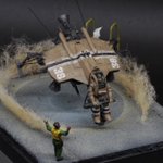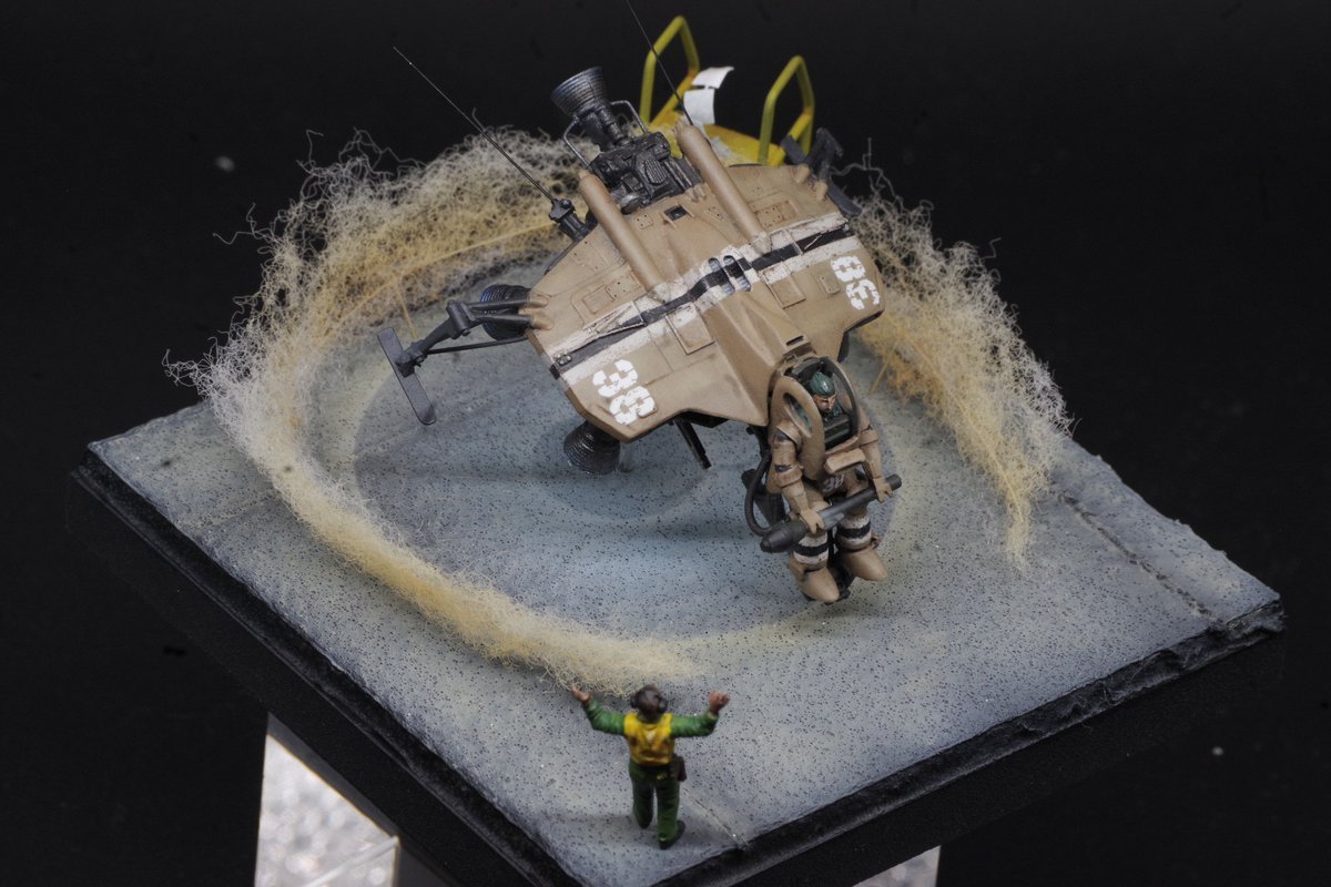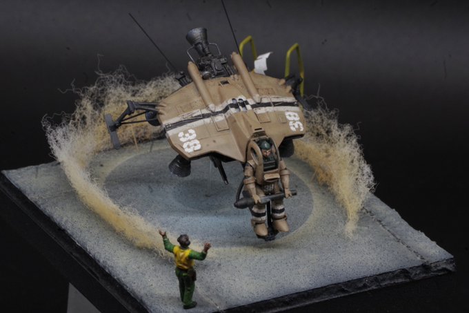 地面のエフェクトだけでは物足りなく感じたので、砂ぼこりを綿で追加しました、これで今度こそ完成です😆 綿を使うのが初めてなので、大袈裟な感じになってる気がする…スーパーサイヤ人悟空の気のエフェクトにみえてきたf(^_^; #マシーネンクリーガー #maschinenkrieger #TENBOWKISSA #ホルニッセ