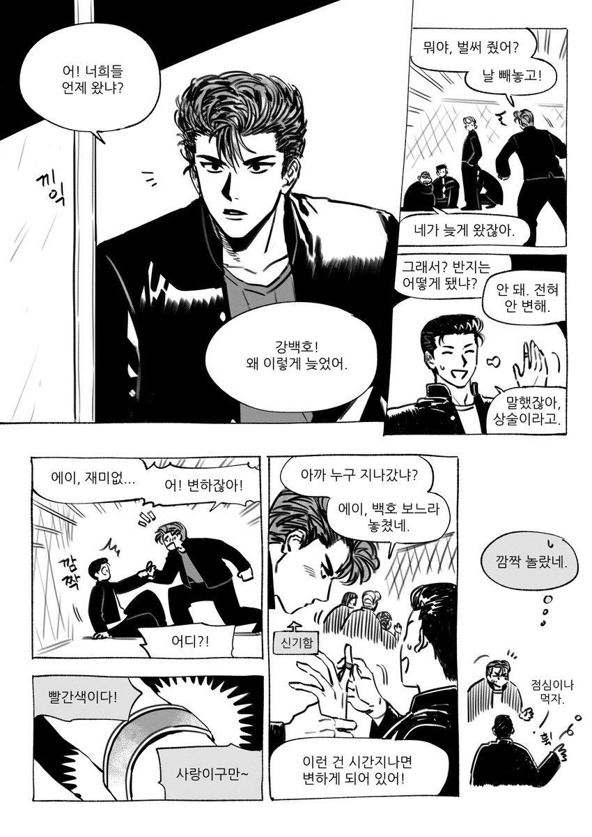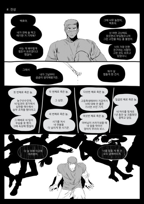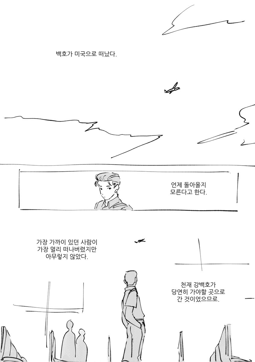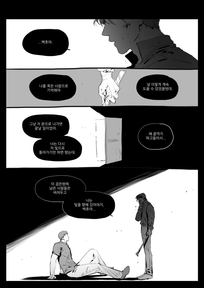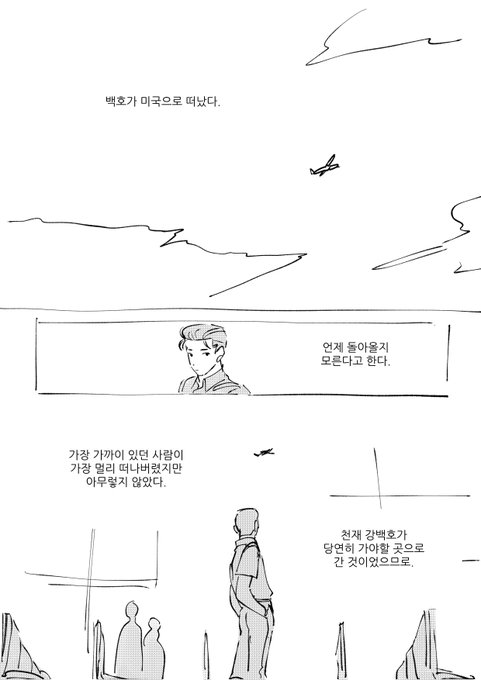 호열백호/ 백호가 미국으로 떠난 뒤의 호열이 얘기인데 그리다가 너무 길어져서 포스타입에 올렸어요... 좀 이상한데 순애물입니다 (호열이 위주고 백호는 손만 나와요) posty.pe/qxppbv