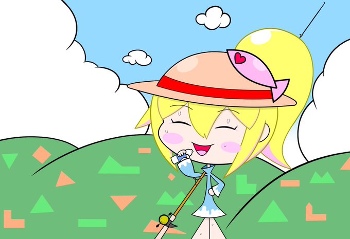 暑くなったね〜帽子と水分補給を忘れないでね〜! #イラスト #釣り #水分補給 #オリキャラ #イラストレーション