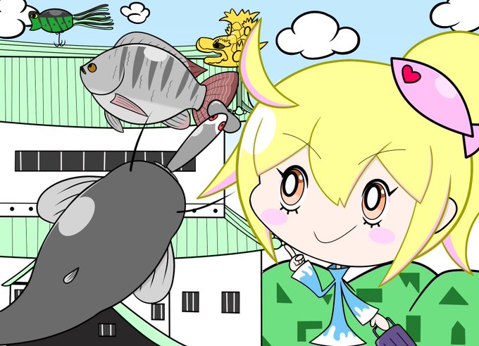 1 22 好きなナマズルアーにブレードとペラとスカート付けておしゃれさせたらナマズにとってもっと魅力的なルアーになるの✨ #ナマズ釣り #釣り #イラスト #オリキャラ #イラストレーション 22/08/07 19:54