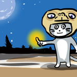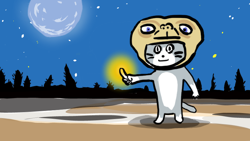 夜中に散歩するネコ🐾 (週末もお元気で) #ねこ #イラスト #ゆるい絵 #ゆるいイラスト #ETの日