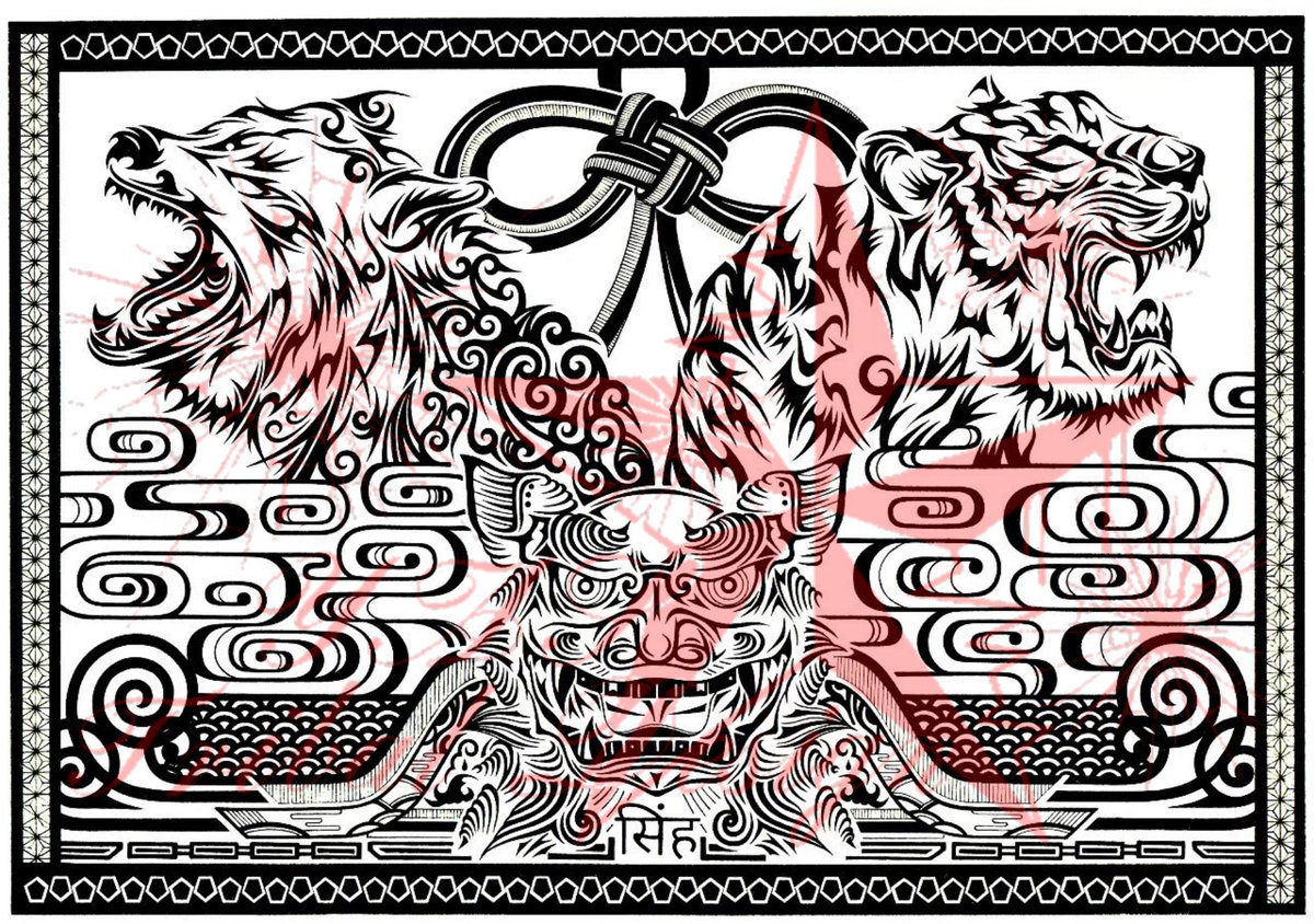 柘榴屋さんとコラボデザイン。 【柘榴屋=イーグル】 【YAS=チャカとその周り】 #トライバル #ペン画 #イラスト #アナログ絵 #コラボ #手描き