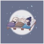 167 1603 #桜魔の土産 #上弦画 #描いた晴 #長尾百景 川の字の寝床がある3人のナワバリ 23/02/13 01:08