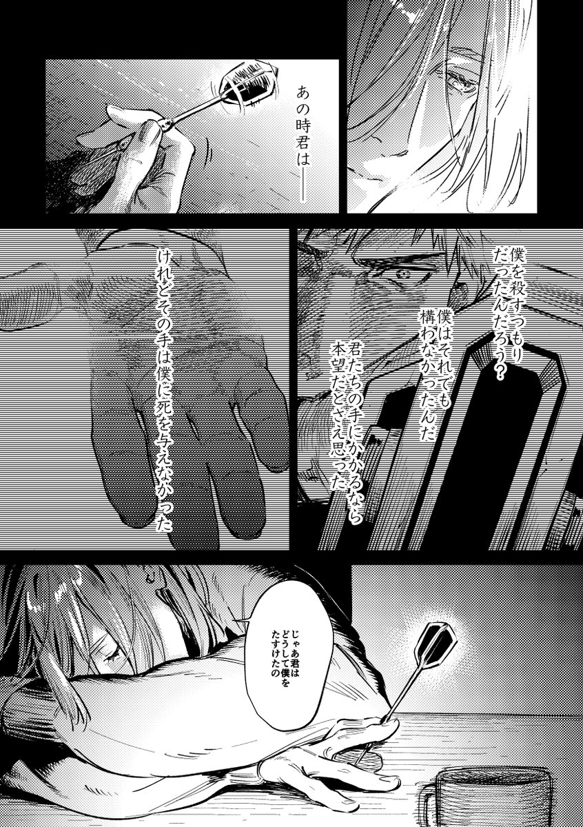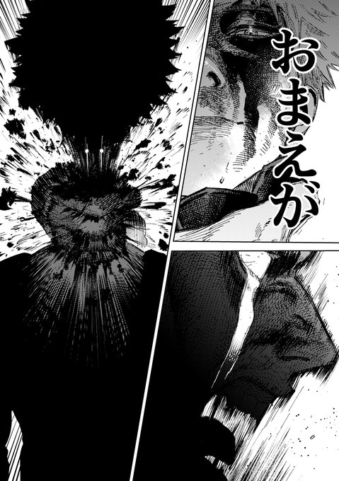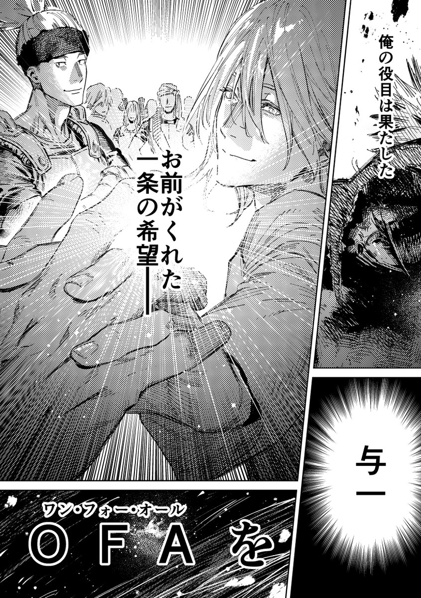 ⚠️5P目で二代目の首が飛びます⚠️兄さんの涙の理由と慟哭、二代目が微笑んだ理由と殺される場面とその瞬間の走馬灯という観念的な部分が描きたかっただけなのでOFA周りの設定の整合性は取れていないので悪しからず…あと兄さんが打とうとしてる注射はお薬的なサムシングですよくわからんけど…(2/2)