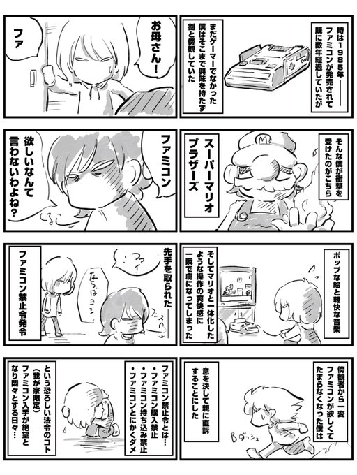 110 322 今日はファミコン生誕38周年ということで、変な漫画描きました(4コマと同じ順番で読んでくだされ) #ファミコンの日 #ファミコン 21/07/15 12:22