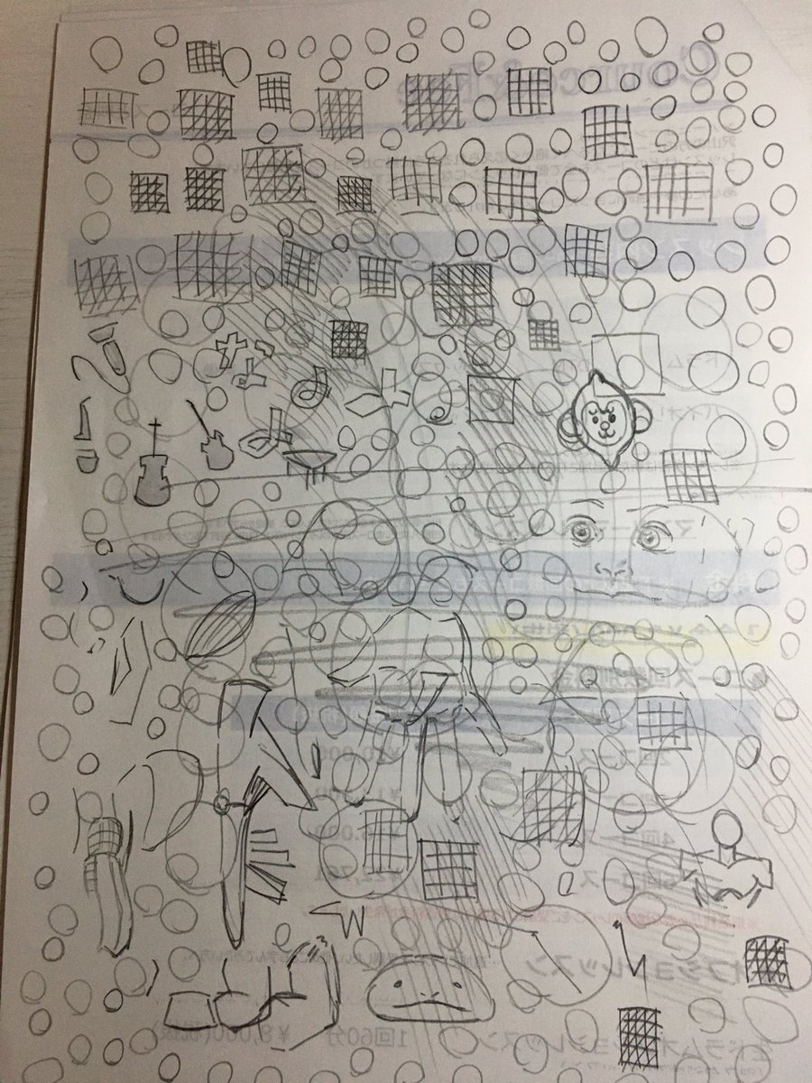 丸と線の練習と落書きしてたらホラー映画に出てくる落書きみたいになってきた
