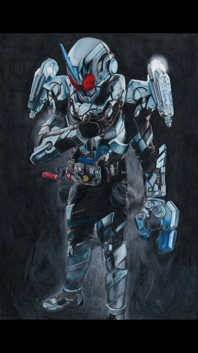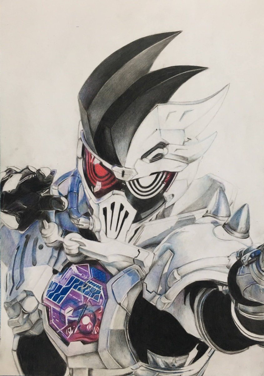 「モチベ上げるために過去絵を振り返る」 ⑥仮面ライダーグリスブリザード 初めて全身描いたし初めて背景に色つけた初めてづくしの色鉛筆画。 アーマーのメタリック感とか光沢感出すのムズかったなぁ。 いやぁしかし背景の塗が雑いね。でも確実に成長した。