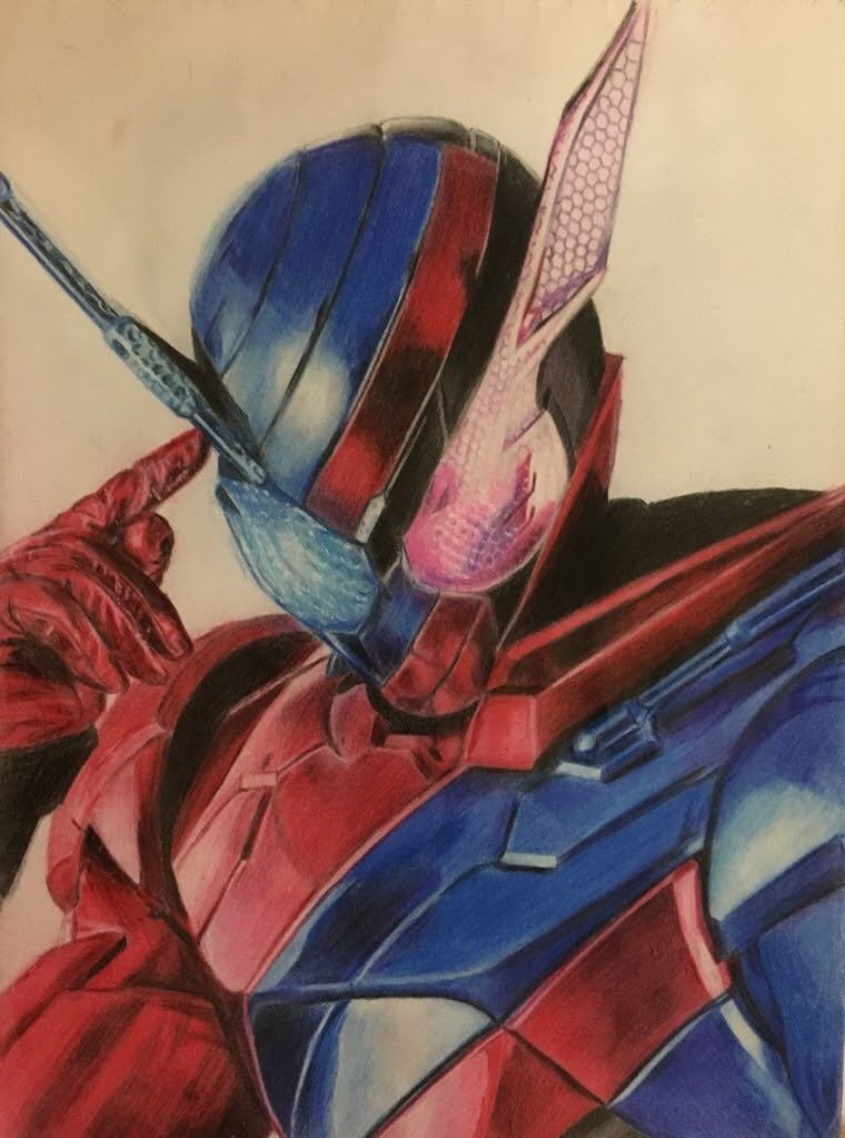 「モチベ上げるために過去絵を振り返る」 ①仮面ライダービルド ラビットタンクフォーム 色鉛筆画を初めてガチで描いた一枚。 高校の時か、、懐かしい