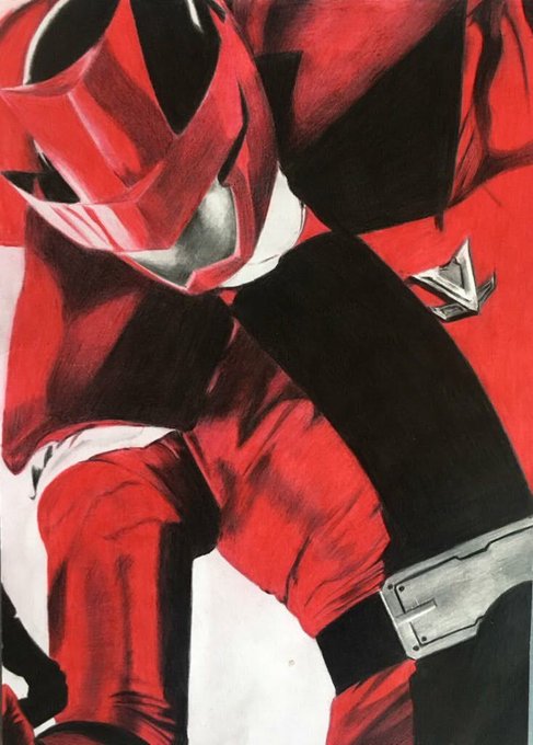 5 31 「モチベ上げるために過去絵を振り返る」 ①仮面ライダービルド ラビットタンクフォーム 色鉛筆画を初めてガチで描いた一枚。 高校の時か、、懐かしい 22/05/12 00:55