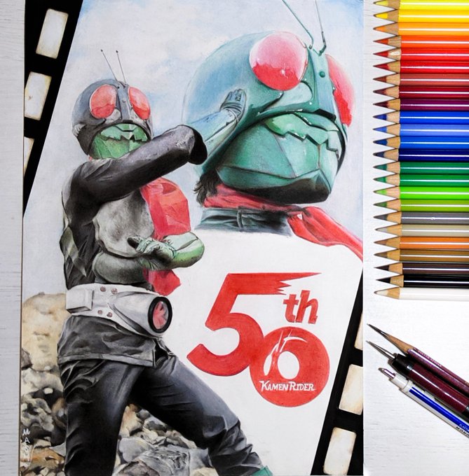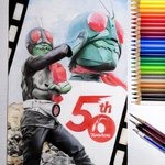 38 143 色鉛筆で「仮面ライダー1号 桜島ver」描きました!!!!!!!! 50周年少し過ぎてしまいましたが、50周年記念的な感じのイラストに仕上げました!! おめでとうございます!!!! 🎉🎉🎉🎉🎉🎉🎉 (一部修正再投稿っす) #色鉛筆画 #イラスト #仮面ライダー #仮面ライダー50周年 22/05/11 12:00