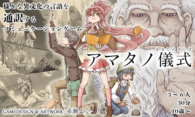 #ゲームマーケット2021秋 では、SUNNY BIRDブース(A12)にて、異文化謎言語通訳ボードゲーム『アマタノ儀式』を販売します! 東京の #ゲムマ では初の販売となる準新作です。 同時に期間限定でゲムマ価格・送料無料で通販も行います。よろしくお願いします!