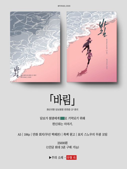 안녕하세요. 7월 디페스타와 화산귀환 통합 온리전에서 판매했던 당보청명 회지 [바림]을 웹공개합니다. 1부:yonar-chan.postype.com/post/15026133 2부[完]:yonar-chan.postype.com/post/15026227 무료 웹공개 기간 : 2023.08.02 20:12PM ~ 2023.08.04 20:10PM 까지 무료 웹공개 기간 이후로는 유료 전환됩니다. 즐거운 감상… twitter.com/i/web/status/1…