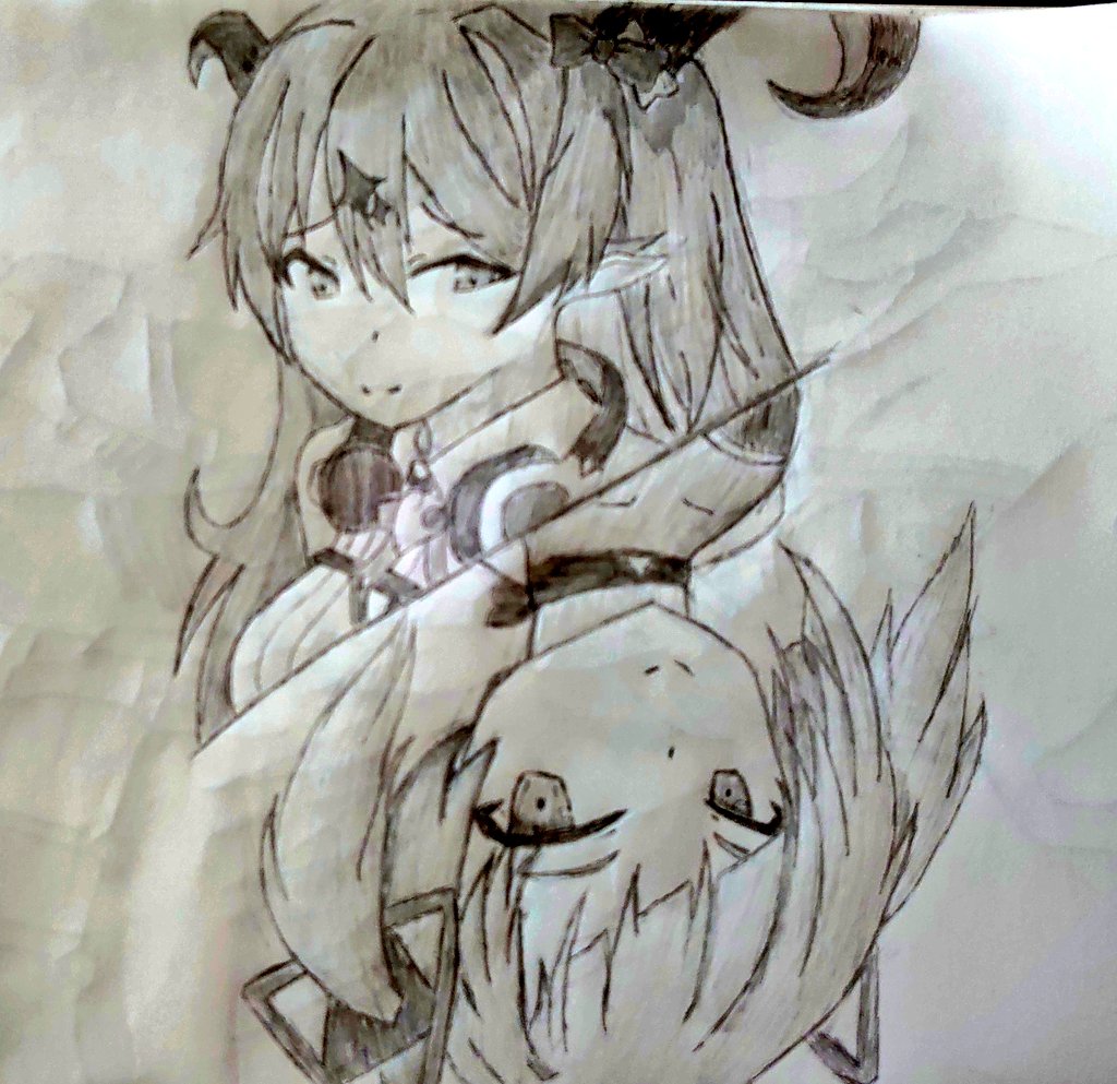 #Δrt #まのあろ絵 デルちゃん初お絵描き 後、意味もなく、単純に大好きだった魔乃アロエちゃんも一緒に描いてみた