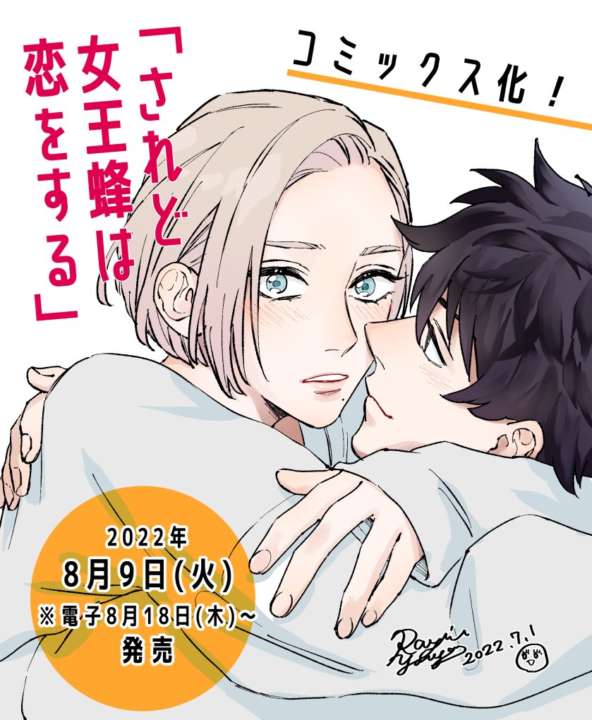 💛🐝 #されど女王蜂は恋をする 🐝💛 コミックス化が決定しました!やった〜〜✨✨✨ 発売日は 8月9日(電子8/18〜)です。 描き下ろしでは最終話から3ヶ月後の二人を描きました🍽 書店特典は続報お待ちいただけると幸いです😊🙏 どうぞよろしくお願いいたします🙇♀️💕 ドキド…ドッドッド…💗 #され恋