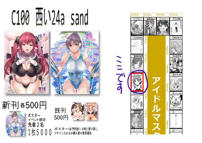 あなたのサークル「sand」は、コミックマーケット102で「日曜日 東地区 “ヨ” ブロック 38b」に配置されました!コミケWebカタログにてサークル情報ページ公開中です! webcatalog.circle.ms/Circle/Map/173… #C102WebCatalog