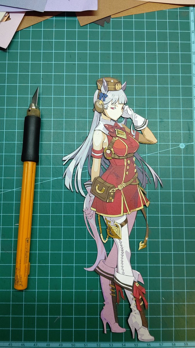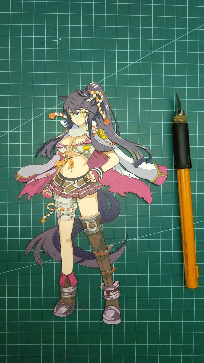 26 76 #いろどりパドックへおいでよ #切り絵 素敵なタグを、切り絵での許可を頂きましたので参加させて頂きます! 途中経過かつトレス切り絵ですが、全てのウマ娘の切り絵を1つの額に飾ることを目標に切ってます。 23/06/01 21:09
