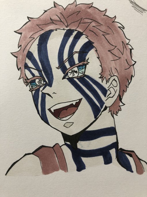 結構前に描いた猗窩座👊🦶🥋 #鬼滅の刃 #鬼滅の刃イラスト #猗窩座 #絵描きさんと繋がりたい