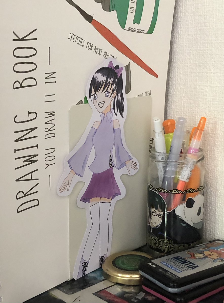 ブックスタンド📕✨が寂しかったのでそれに貼るオリキャラを描きました!(*^ω^*) #イラスト #イラスト好きな人と繋がりたい #中学生絵描きさんと繋がりたい #中学生でこれは上手いと思ったらRT