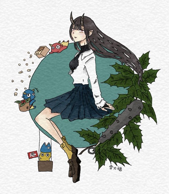 20 119 久しぶりのイラスト✨ ( ´∀`)鬼!(節分は過ぎてしまいましたが……) #イラスト 22/02/10 06:02