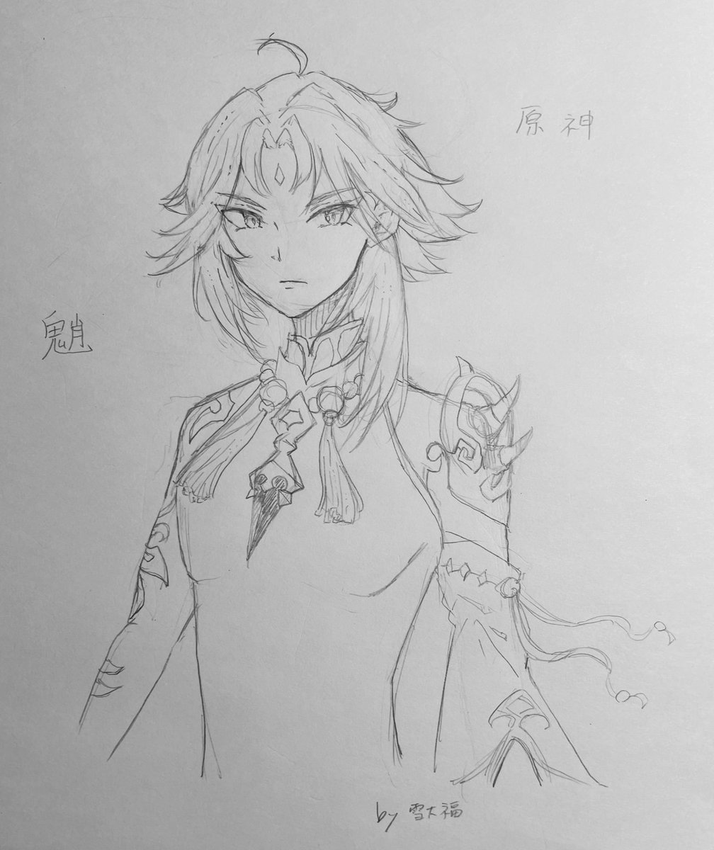 別のアカウントで半年前くらいに投稿ものですが.... いつも推しを描いていたのでたまに主人公君を描いてみました(´∇`)