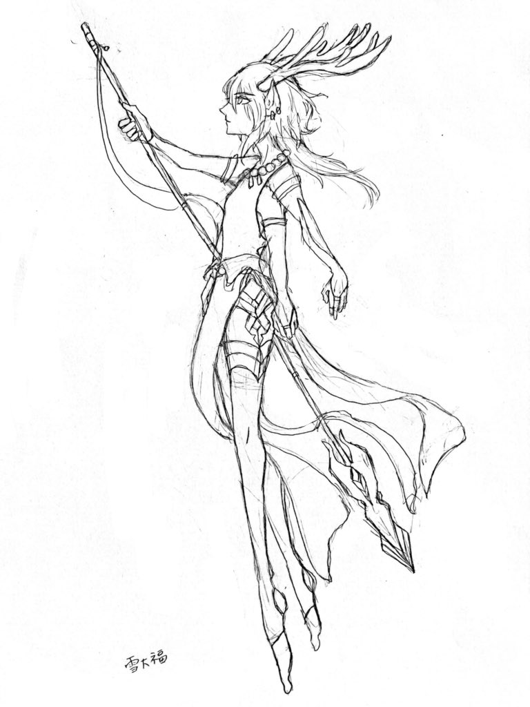 鹿の神様的な...?感じです(:3_ヽ)_ 腕4本難しい.... #イラスト