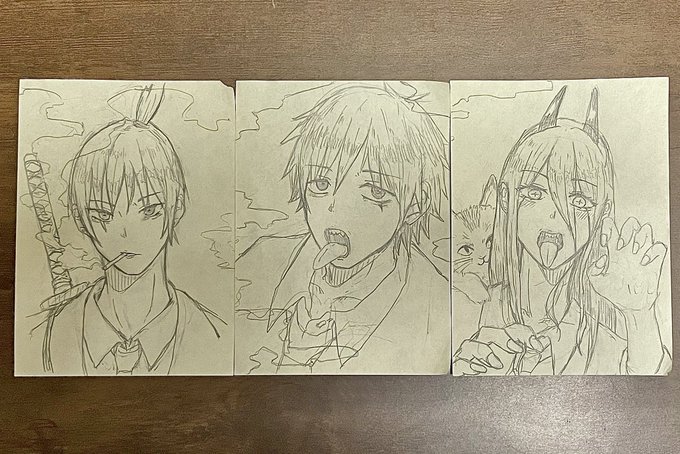 久々に... 只今シャーペンのみのイラストを練習中です _✍ 「チェンソーマン」 #イラスト