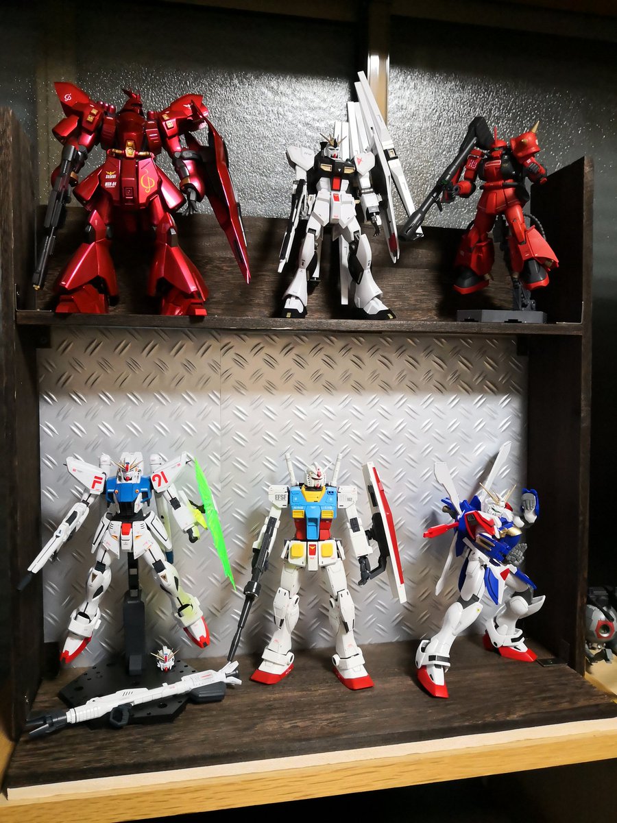先日の動画ネタで作った、100均ガンプラ飾り棚です。予算1080円。作業時間30分です。なかなか良きです😏 #ガンプラ
