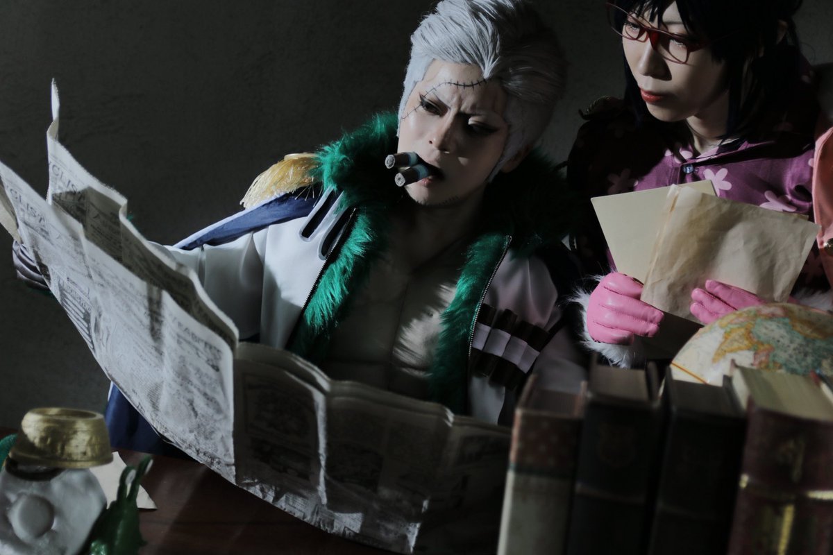 5 14 【cos❁ ONE PIECE 】 中将 と 大佐 スモーカー 🚬:白朱雀 たしぎ ☔️:ユーリ photo 📸:たすくさん 22/03/14 22:38
