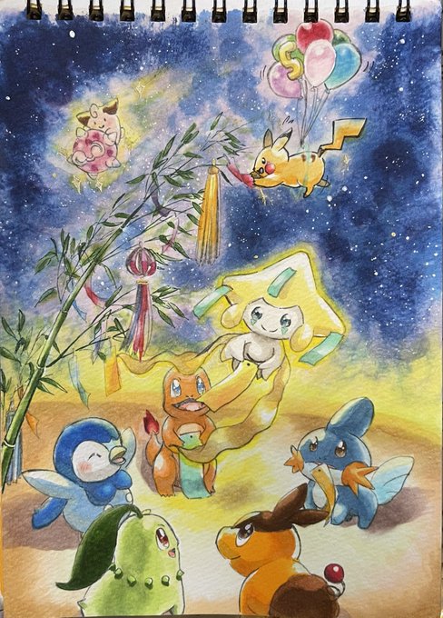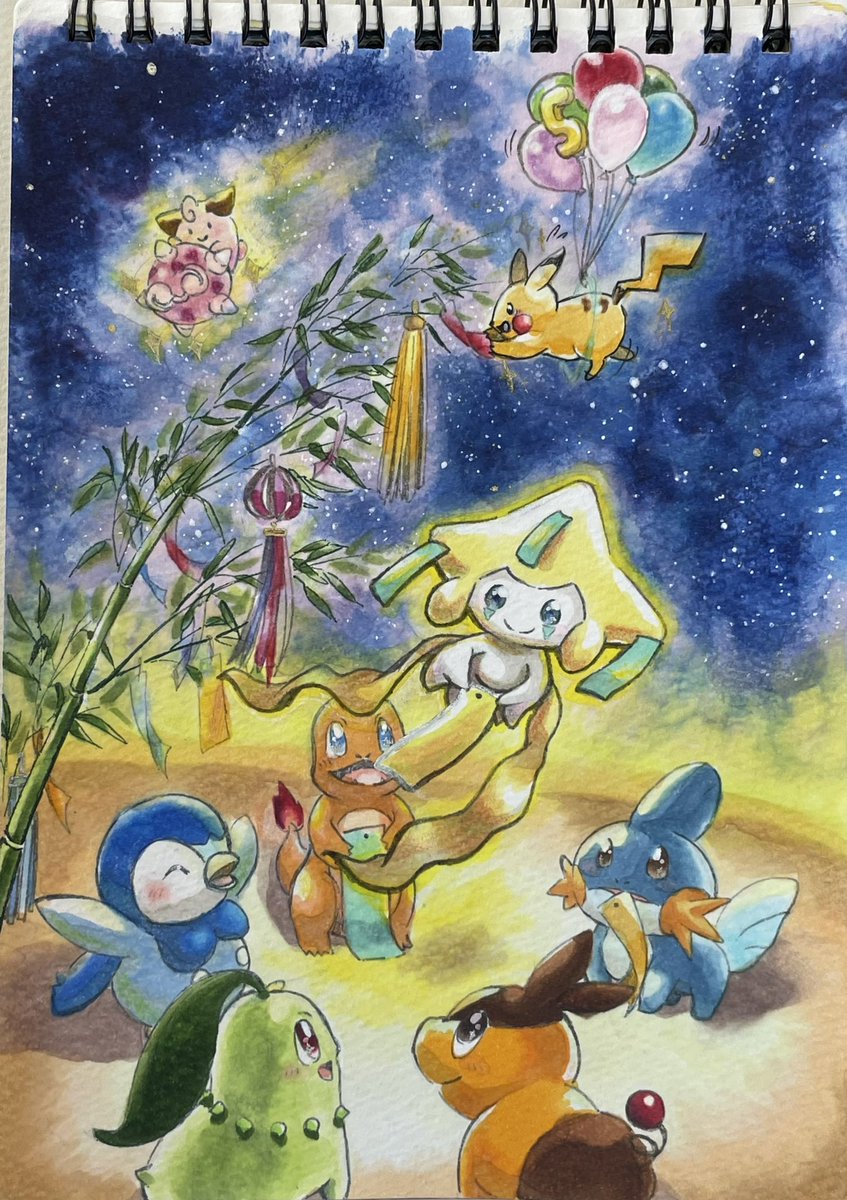 #ポケモン #七夕 #コピック #アナログイラスト きみの願いを叶えよう。