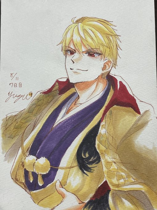 2 18 #1日1絵 #アナログイラスト ギル…若旦那、何着ても似合いますね 23/08/12 00:08