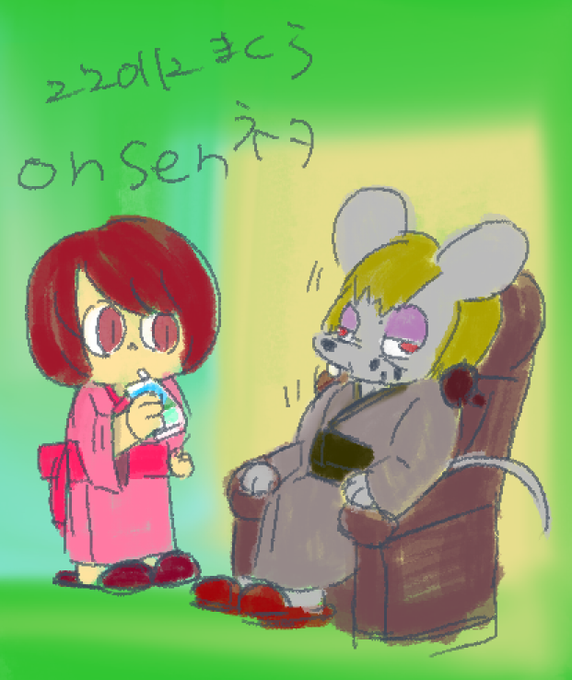 1 12 (過去絵)敬老の日だからマッサージ?する💚の絵あげ 22/09/19 22:56