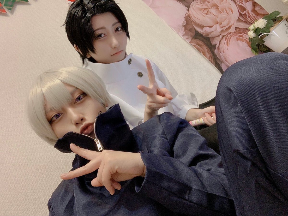 3 10 cos*2着目🍙🍰とげぴ2度目にして既にウィッグを新調しました😌 どこからどう見てもイケメンでスパダリなゆうたに完敗してしまった😇マカロンを2人で8個も平らげてケーキにお菓子にシャンメリーも1人一本ずつ飲んじゃった✌︎('ω'✌︎ )でもクリスマスだからいいよね🥳笑 乙骨憂太💍あを 狗巻棘🍙ゆの 21/12/09 22:42