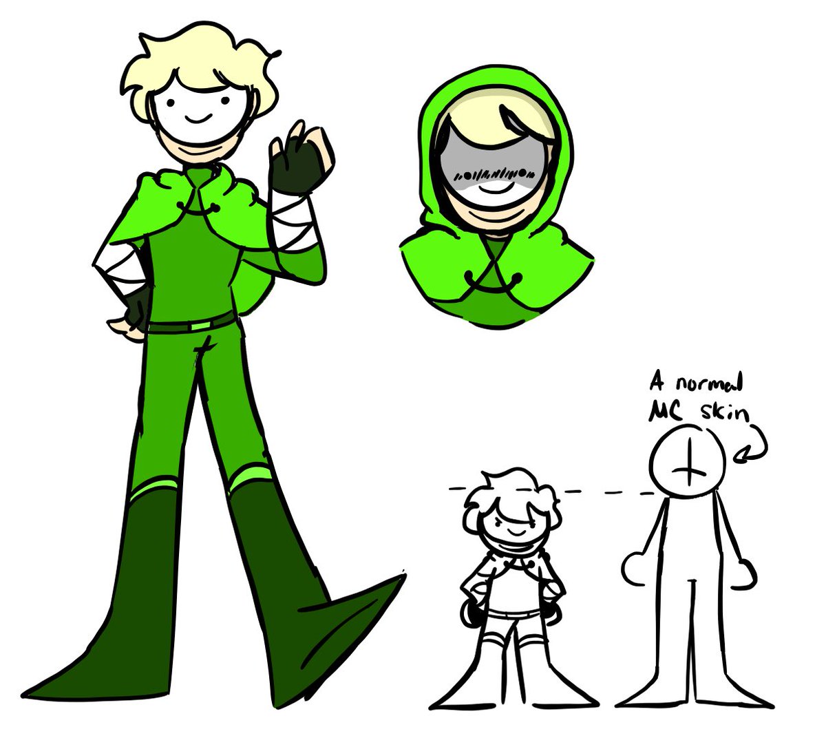 My take on Dream’s skin. On his mc skin, his “face” is at the level of a normal player’s chest so I thought, what if Dream was short? An excuse to say how he’s able to slip away in the manhunt vids #dreamfanart
