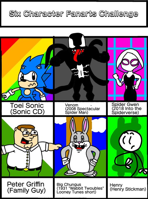 6 13 I finally finished an old project. (Also, don't mind the misspell of Henry's last name) #SixFanarts #SixFanartsChallenge #digitalart #ArtistOnTwitter #artists #art #SonicTheHedgehog #SpiderMan #FamilyGuy #Memes #LooneyTunes #HenryStickmin #HenryStickminFanArt 20/12/24 13:30