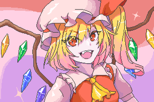2 5 玩了主播女孩重度依賴後受到啟發 用了以前沒用過的網點,也是第一次畫到300x200 各種方面上都是第一次的嘗試 #pixelart #ドット絵 #東方 23/03/23 04:15