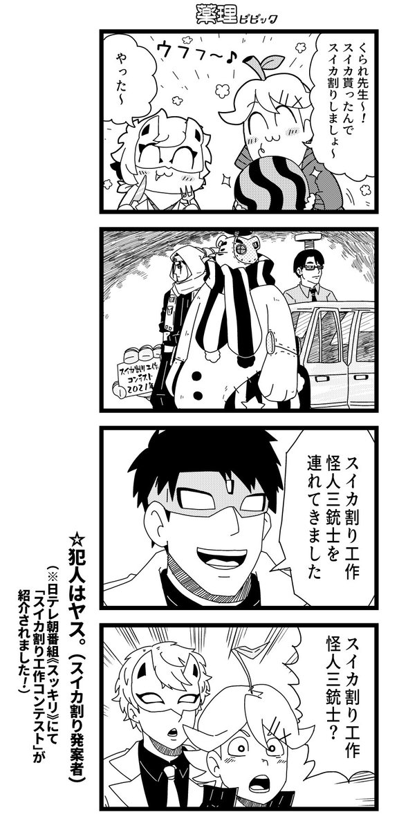 問題:たかし君は1個70円のりんごと1個30円のみかんを握り潰してこう言いました。 「次はお前がこうなる番だ」 なお、夏休みの薬理工作クラスタ達は自作のスイカ割りマシーンでスイカを爆発させていることとする。 #薬理凶画 #スイカ割り工作コンテスト