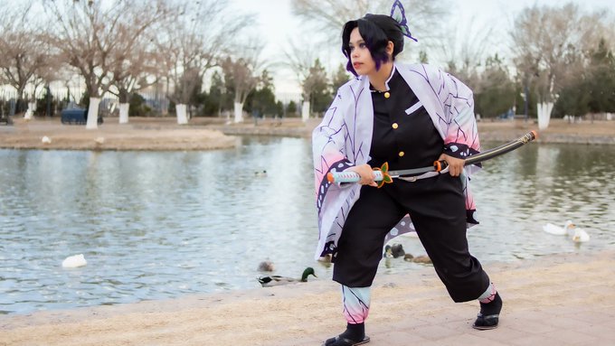 Miren que chulada de foto nos tomaron a @SairuRosensword y a mi #kimetsunoyaiba #DemonSlayer #cosplay #kanroji #obanai