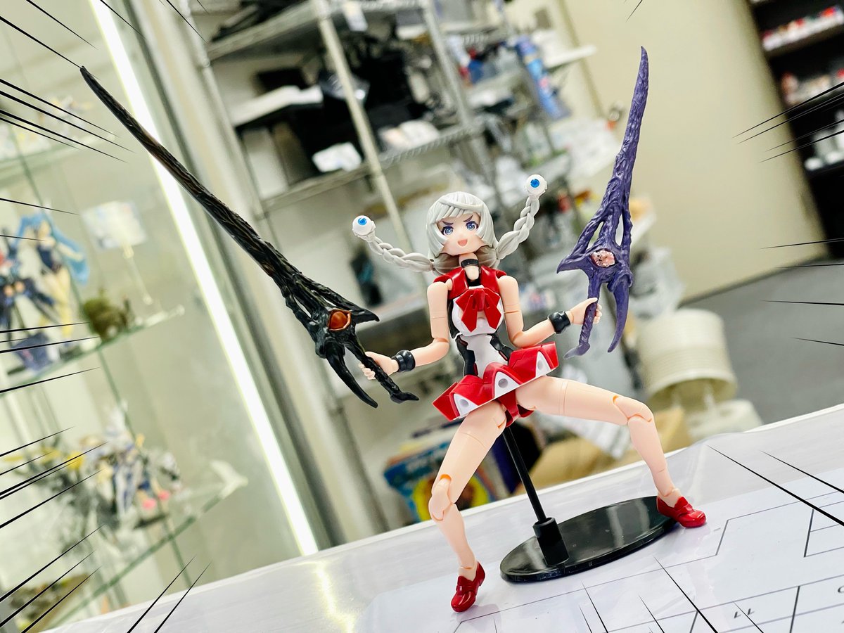 ちょこっと調整したのと 腕を武装腕に変更 こっちの方がバランスいい気する …またやること増えたな?🤔 #メガミデバイス #くるーむFACTORY twitter.com/Yae7th/statu…