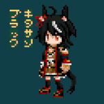 3 24 キタサンブラック!!困った人はほっておけない元気で明るいお祭り大好きウマ娘。サトちゃんとは仲良しでライバルな存在。テイオーに憧れる。体重がもりもり成長中なのが何か可愛い☆ #ウマ娘 #ドット絵 23/02/14 21:38