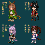 8 30 せっかくなのでこの並びをしてみる。矢印は好きな方に☆キタサンとマックちゃん、ダイヤちゃんとテイオーに関しては絡みがあるのかよくわからん、にわかなので☆ #ウマ娘 #ドット絵 23/02/14 21:44