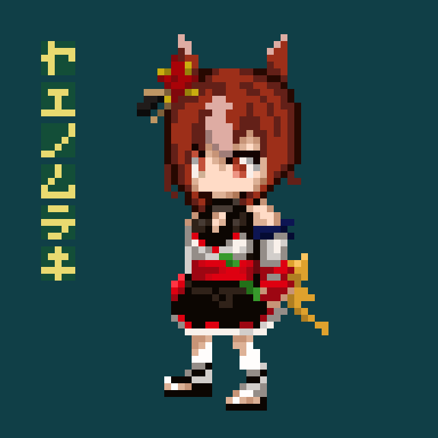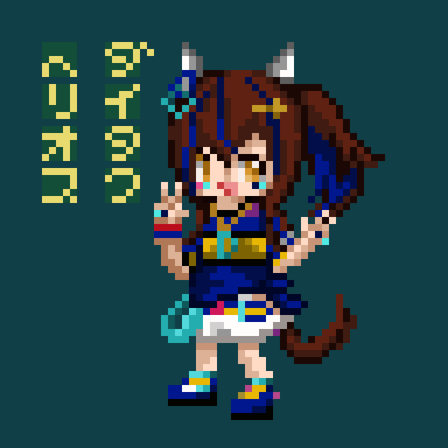 2 13 ダイタクヘリオス!!(推し)うぇーい♪友達の多いギャル!ノリで生きてけ笑って生きるぜ太陽神☆パマちんとかジョーダンと仲良し☆かうぃあい☆ #ウマ娘 #ドット絵 23/02/05 23:20