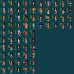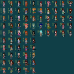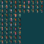 70人揃った。シリウスシンボリに関してはまだ勝負服がないので制服で我慢してもらおう。こう見るとターボさんの色がかなり目立ちますなあ。と思ったけど、その横のスカイさんとかデジたんもかなり派手な色しているな。みんな可愛い☆ #ウマ娘 #ドット絵