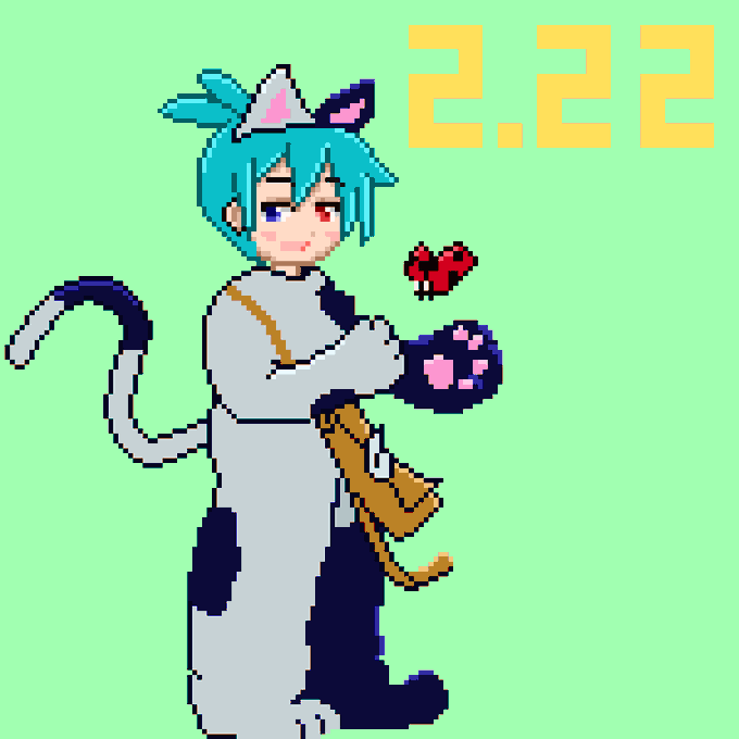 5 31 2月22日は猫の日ということで、にゃんこのシグ描いてみた。猫になってもかばんはかけたままなの可愛い。はいどれんあじあ!!なんだかんだでシグを描くには初めてやけど、オッドアイいいよね☆やるのか! #ぷよクエ #ドット絵 23/02/22 21:55