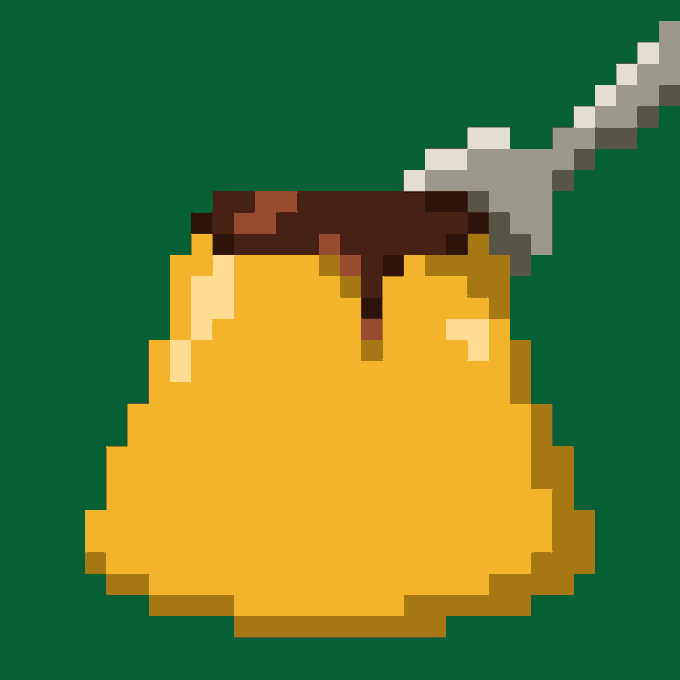 #10分ドット テーマは『プリン』 ポケモンの方を描こうかと思ったけど、多分ちゃうやろなと思って食べ物のほうにしました。最近食べてないけど、おいしいですよねえ☆パンナコッタとの違いがいまだにわからない。 #ドット絵
