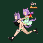 遅くなりましたが、ウマ娘アプリ2周年おめでとう☆去年はゴルシとマックちゃんが同じタイミングで水着実装されるという素敵な年でしたね☆今年もこの二人の絡みが追加されることを期待しています♪孫とじいじ #ウマ娘2周年 #ドット絵