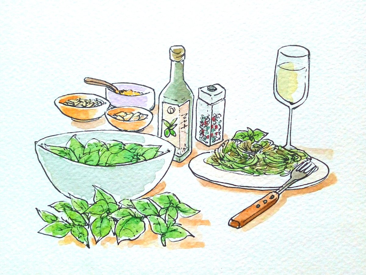 Blog イタリア楽描きessay yluna.hatenablog.com Instagram Watercolor colorink instagram.com/yluna_illustra… #illustration #illustrazione #ink #inchiostro #winsorandnewton #watercolor #aquarelle #pen #手描きイラスト #水彩 #インク #ペン画 #イタリア #料理 #バジルペースト