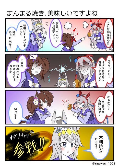 #ウマ娘 #タマモクロス #イナリワン #オグリキャップ 喧嘩を仲裁するオグリキャップ(再掲)