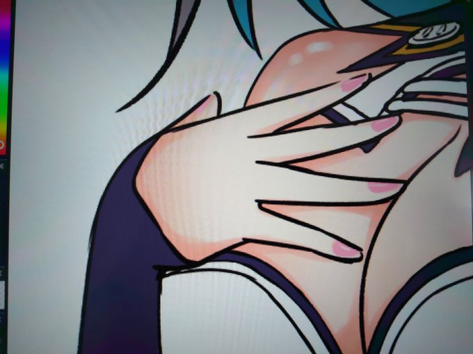 まだ線画だから少しだけ!😋💕 これでもうなんだかわかる人は多いんじゃないかな…?w 🤣💦 というわけで寝ます!(どういうわけ?w) おやすみー!😇🍎✨🌙 #新しいプロフィール写真 #キズナアイ #KizunaAI