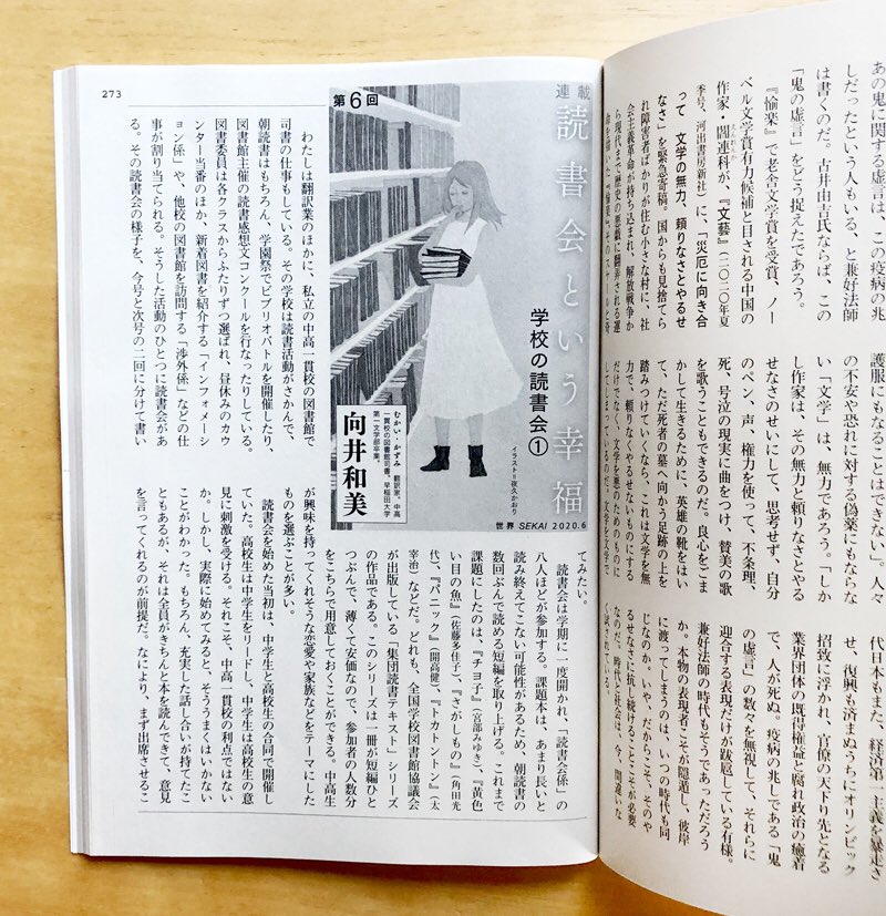 岩波新書『読書会という幸福』(向井和美氏著)の帯と章扉にイラストをご使用いただきました。 イラストは岩波書店の雑誌『世界』にて向井さんのエッセイ「読書会という幸福」連載時挿絵として描き下ろしたもので、この度新書へ再掲していただきました。(嬉しすぎます…!) #夜久かおり #illustration